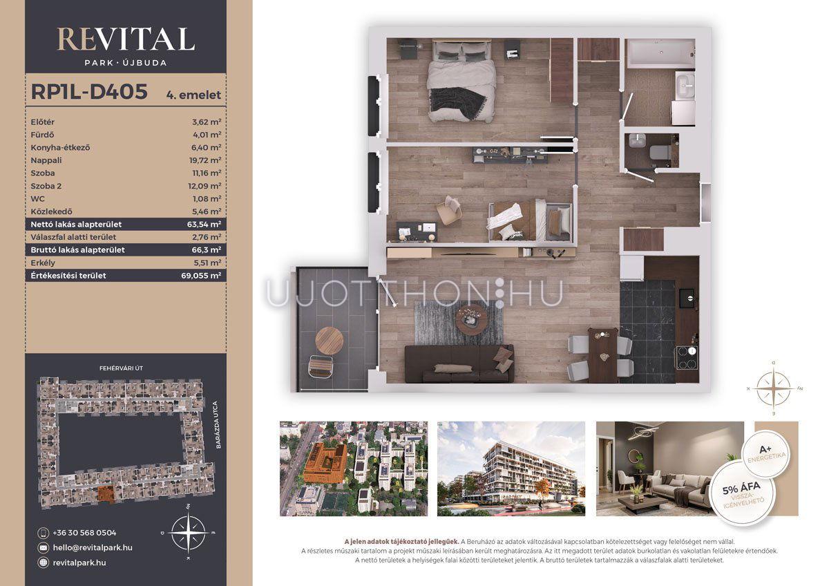 3 szobás 64 m2-es Lakás Revital Park - Budapest XI. kerület, Kelenföld, Fehérvári út 120
