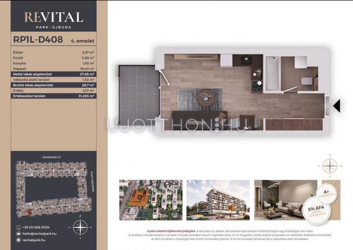 1 szobás 28 m2-es Lakás Revital Park - Budapest XI. kerület, Kelenföld, Fehérvári út 120