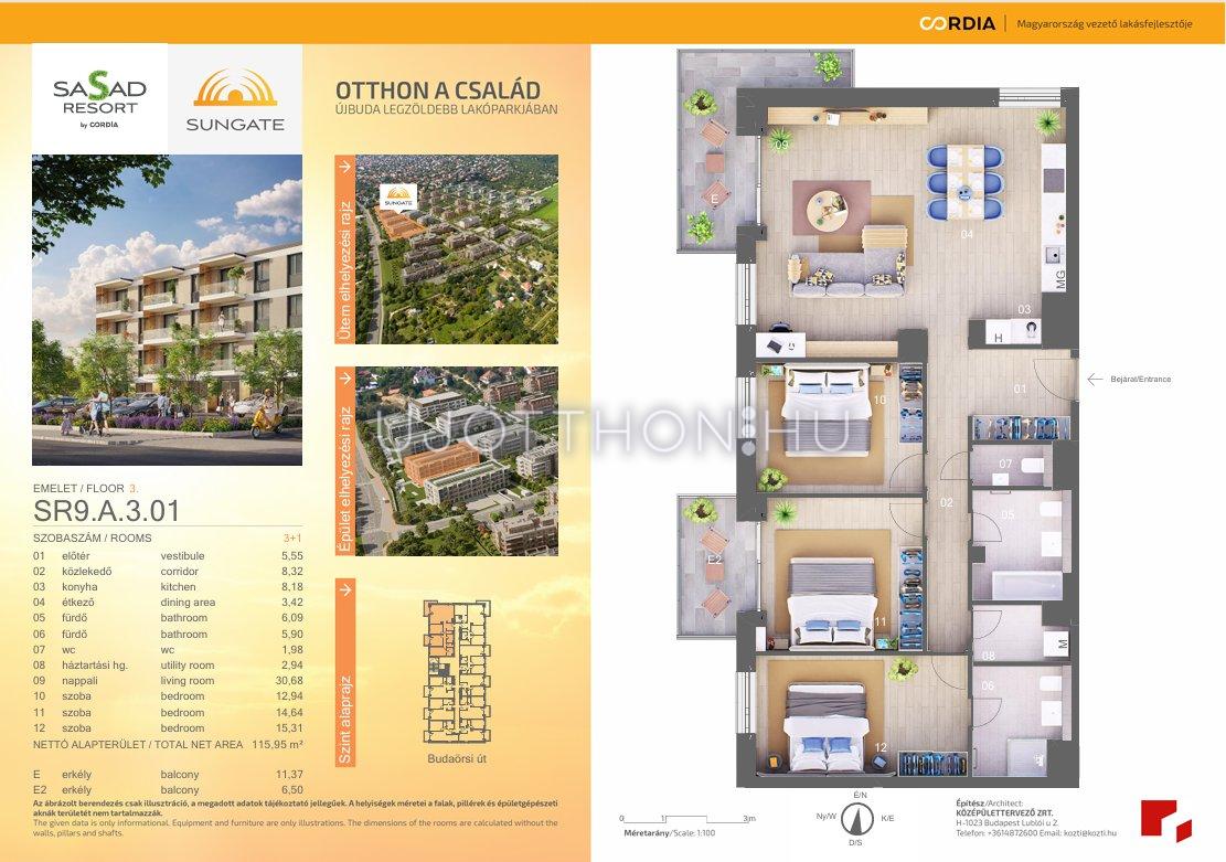 4 szobás 125 m2-es Lakás Sasad Resort Sungate by Cordia - Budapest XI. kerület, Spanyolrét, Virágkertész utca 1/A-2A