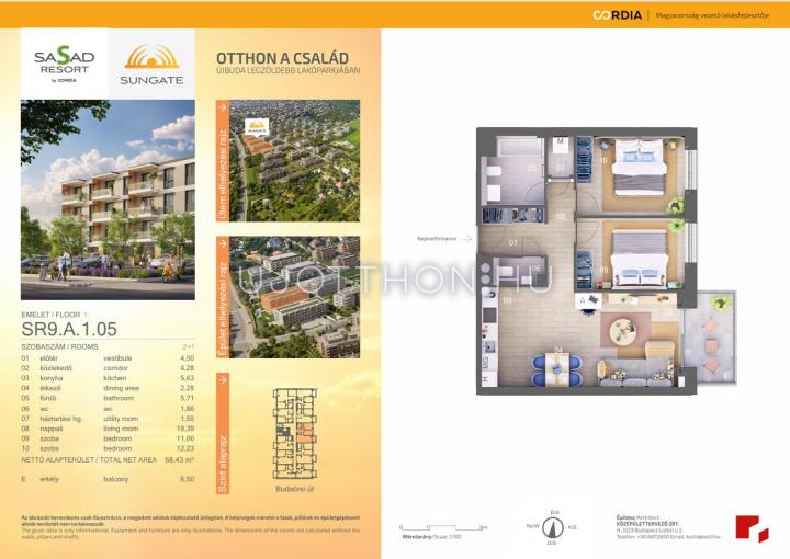 3 szobás 72 m2-es Lakás Sasad Resort Sungate by Cordia - Budapest XI. kerület, Spanyolrét, Virágkertész utca 1/A-2A