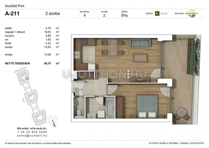 2 szobás 48 m2-es Lakás Sundell Port - Budapest XI. kerület, Albertfalva, Papp Elemér utca 6