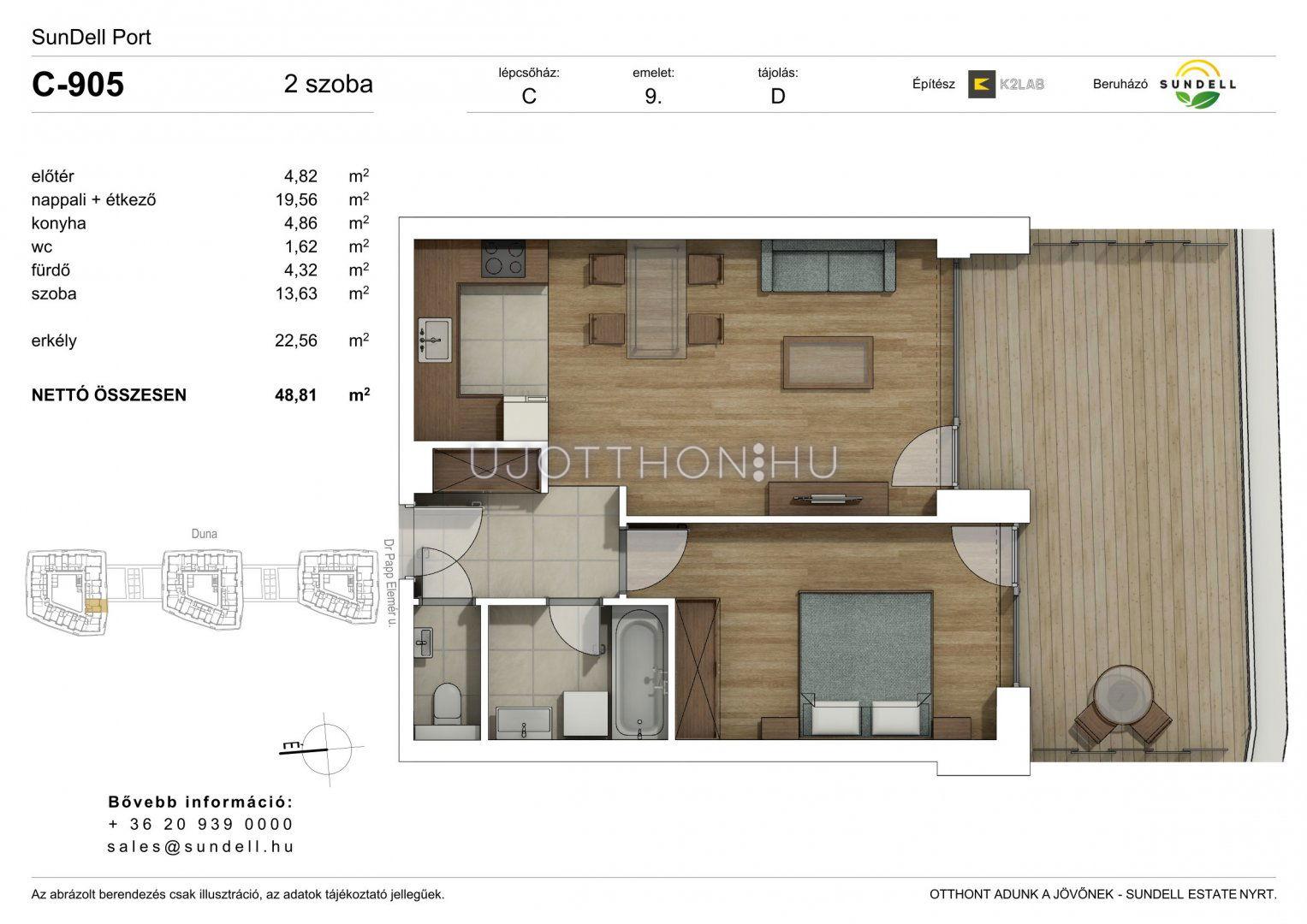 2 szobás 48 m2-es Lakás Sundell Port - Budapest XI. kerület, Albertfalva, Papp Elemér utca 6