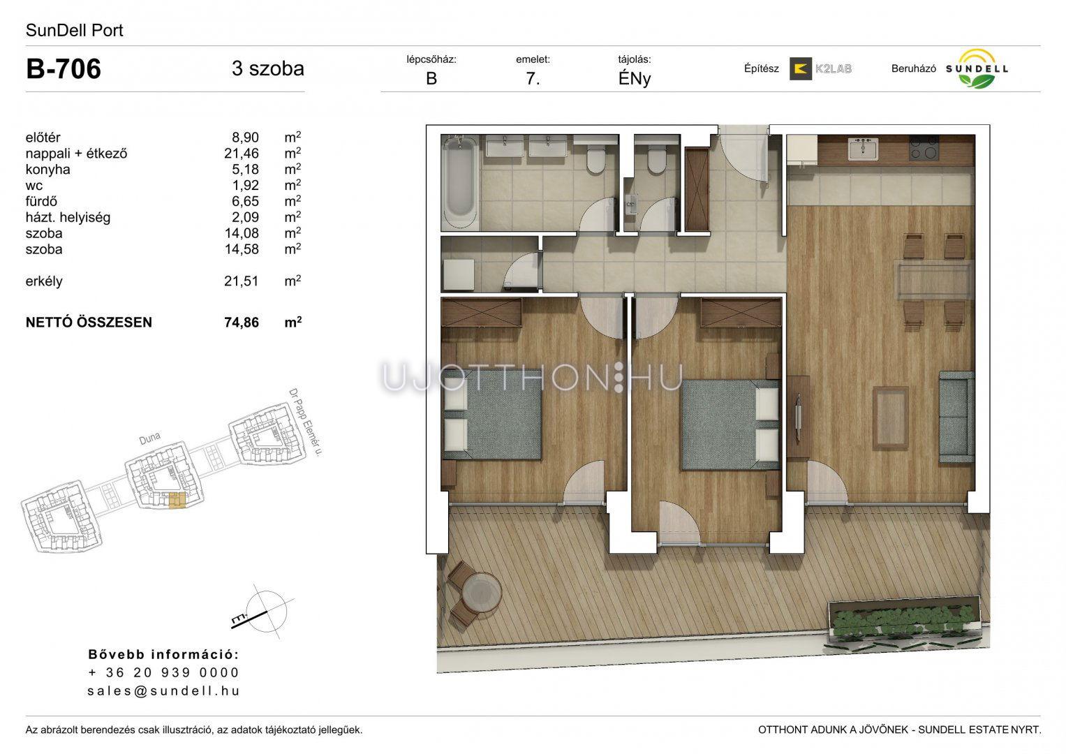3 szobás 75 m2-es Lakás Sundell Port - Budapest XI. kerület, Albertfalva, Papp Elemér utca 6