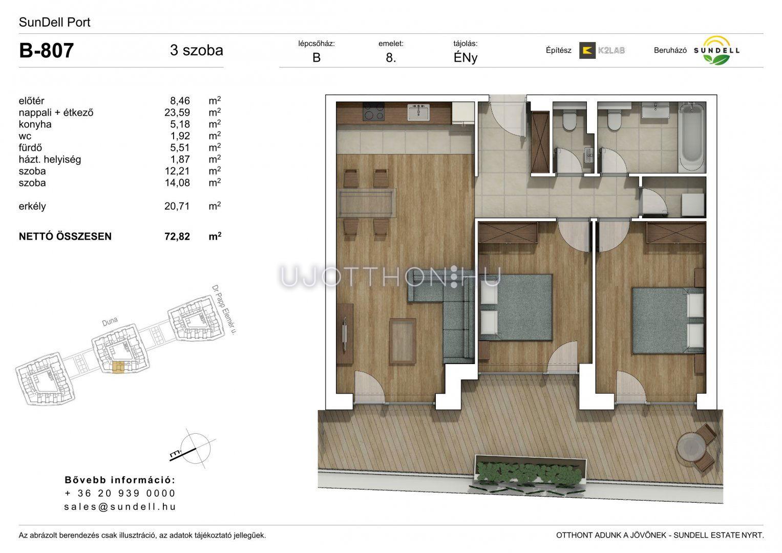 3 szobás 73 m2-es Lakás Sundell Port - Budapest XI. kerület, Albertfalva, Papp Elemér utca 6