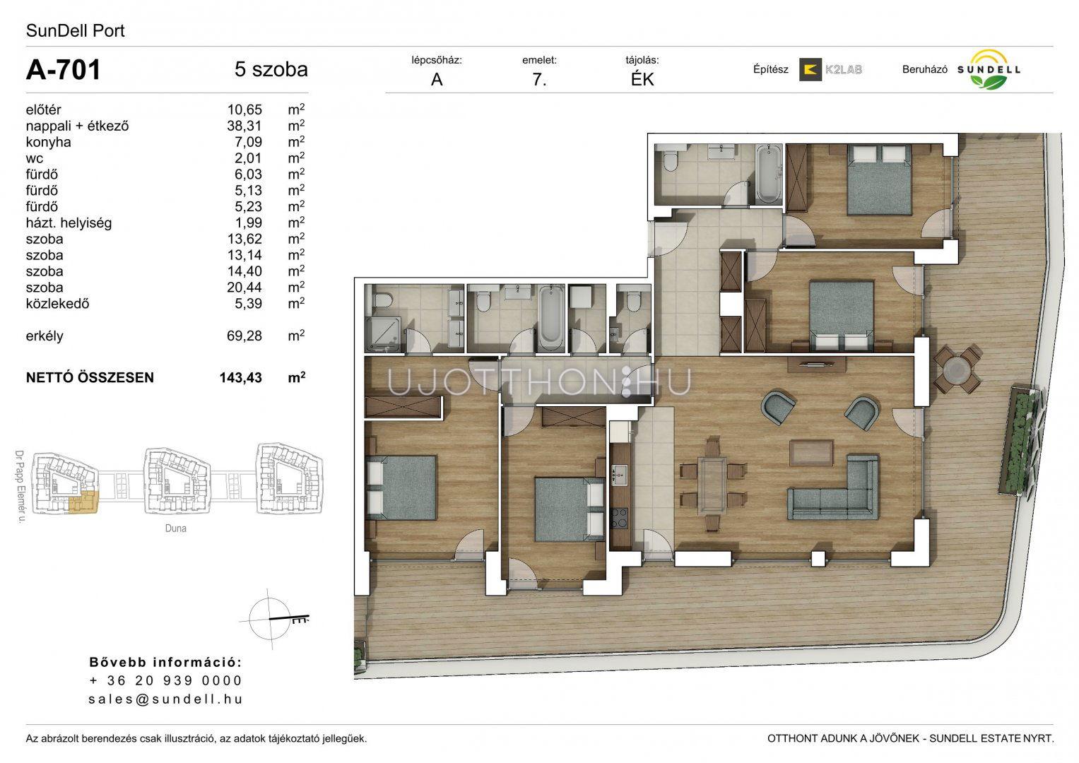 5 szobás 143 m2-es Lakás Sundell Port - Budapest XI. kerület, Albertfalva, Papp Elemér utca 6