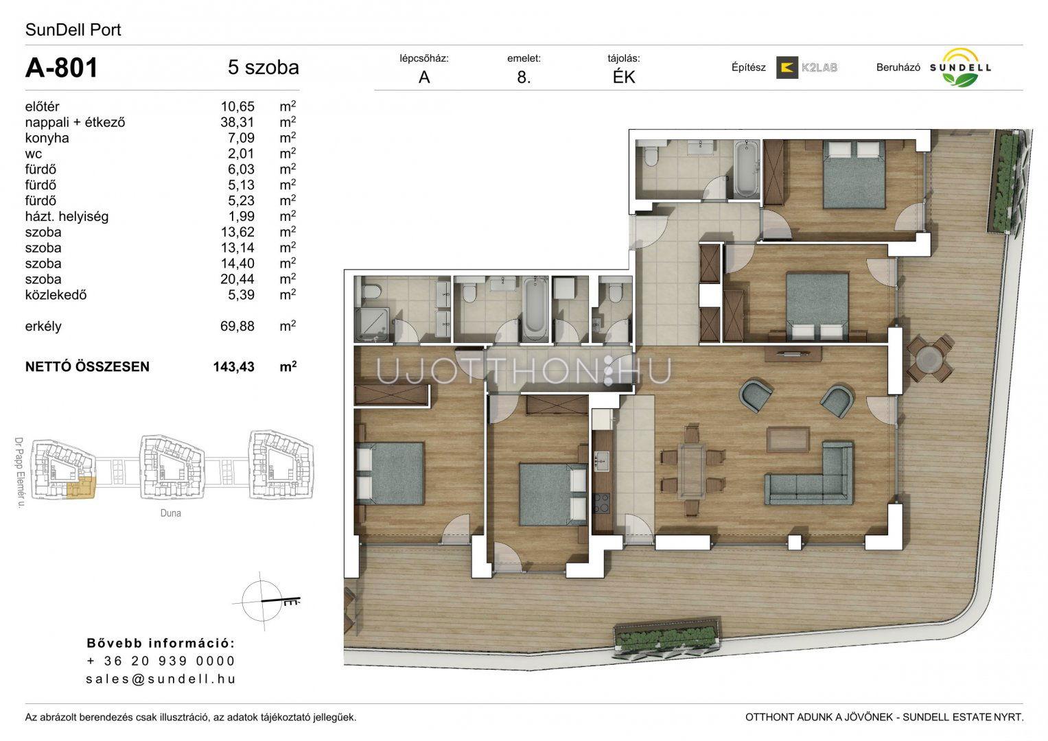 5 szobás 143 m2-es Lakás Sundell Port - Budapest XI. kerület, Albertfalva, Papp Elemér utca 6