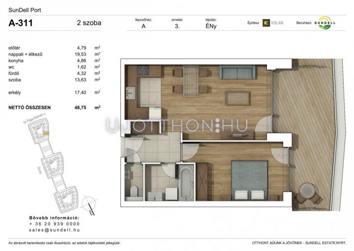 2 szobás 48 m2-es Lakás Sundell Port - Budapest XI. kerület, Albertfalva, Papp Elemér utca 6