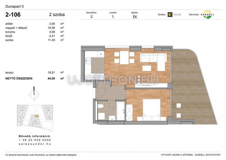 2 szobás 44 m2-es Lakás Sundell Port - Budapest XI. kerület, Albertfalva, Papp Elemér utca 6