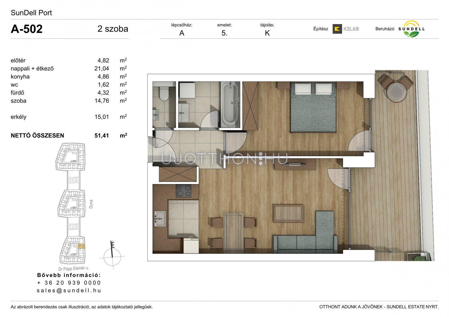 2 szobás 51 m2-es Lakás Sundell Port - Budapest XI. kerület, Albertfalva, Papp Elemér utca 6