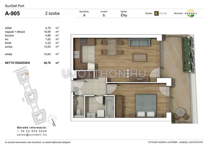 2 szobás 48 m2-es Lakás Sundell Port - Budapest XI. kerület, Albertfalva, Papp Elemér utca 6