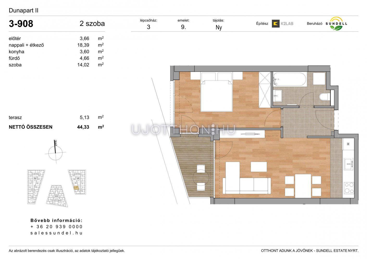 2 szobás 44 m2-es Lakás Sundell Port - Budapest XI. kerület, Albertfalva, Papp Elemér utca 6