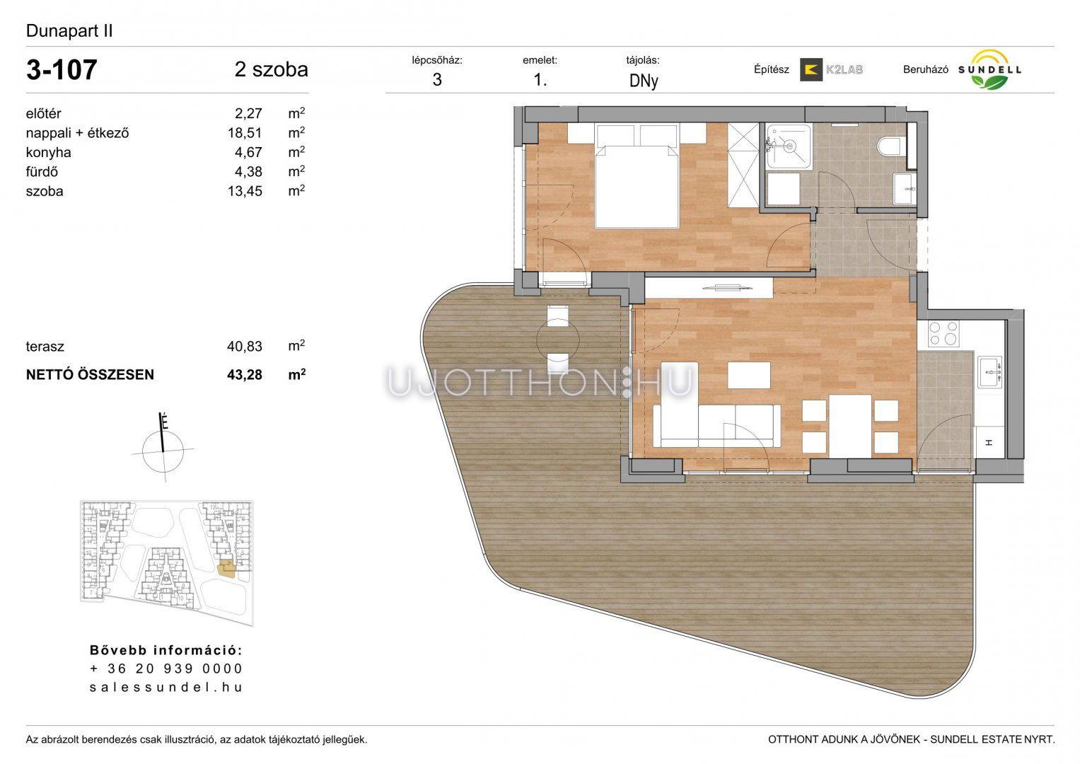 2 szobás 43 m2-es Lakás Sundell Port - Budapest XI. kerület, Albertfalva, Papp Elemér utca 6