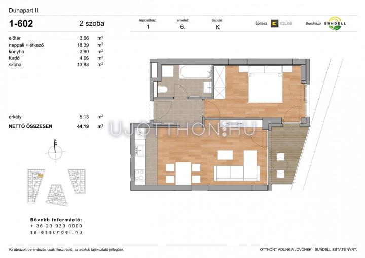 2 szobás 44 m2-es Lakás Sundell Port - Budapest XI. kerület, Albertfalva, Papp Elemér utca 6
