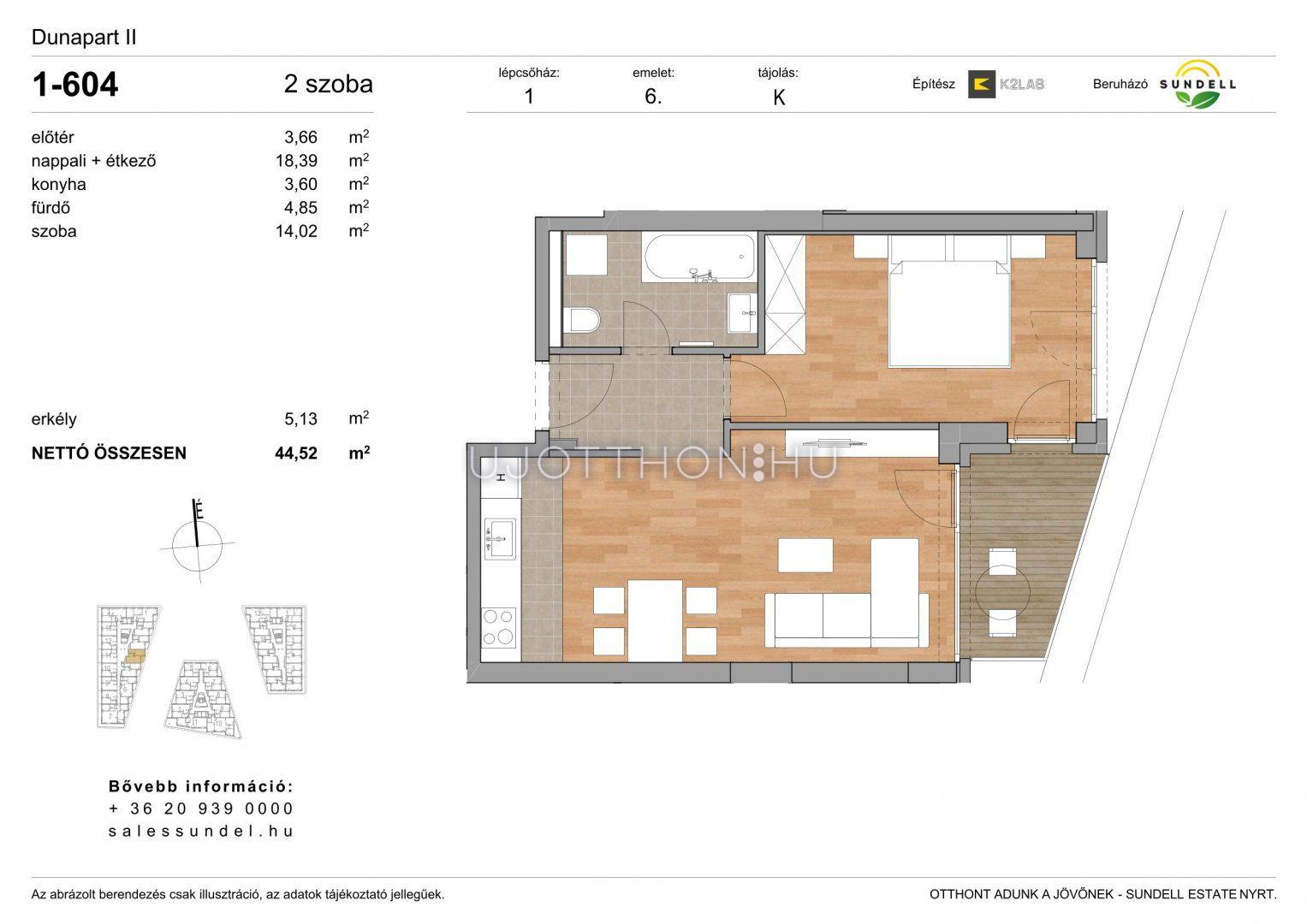 2 szobás 44 m2-es Lakás Sundell Port - Budapest XI. kerület, Albertfalva, Papp Elemér utca 6