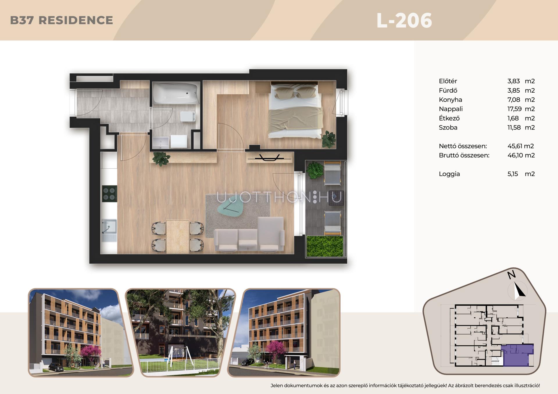 2 szobás 46 m2-es Lakás B37 Residence - Budapest XIII. kerület