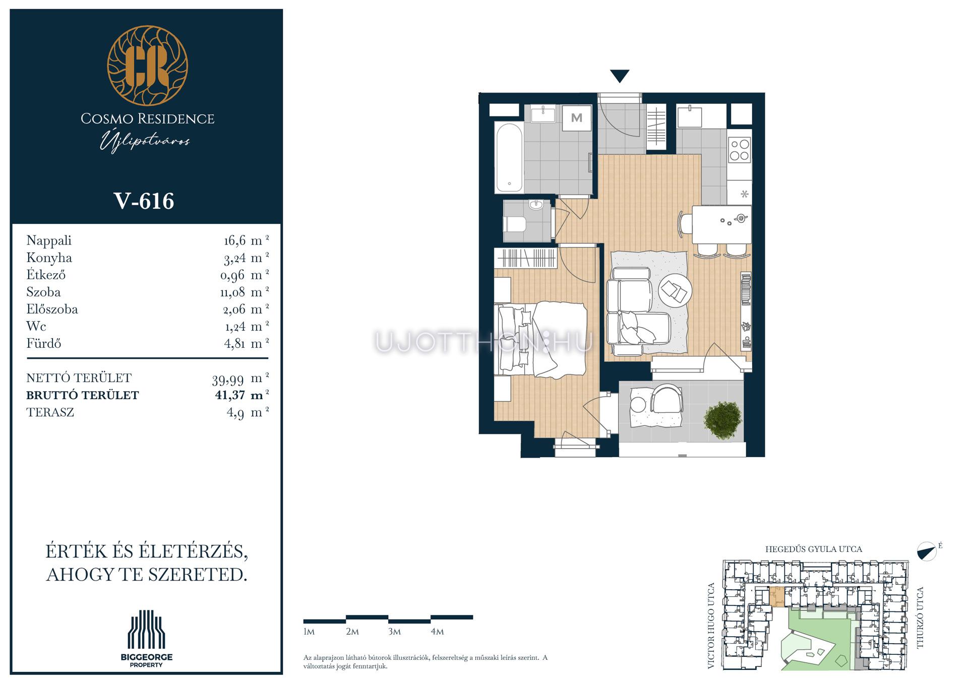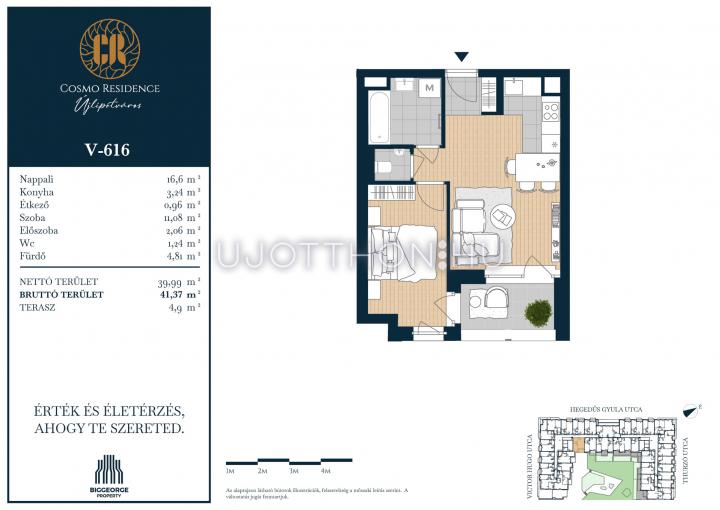 A Biggeorge Property legújabb fejlesztése, a Cosmo Residence Budapest 13. kerületének közkedvelt helyszínén, Újlipótváros szívében épül, a Hegedűs Gyula, Visegrádi, Victor Hugo és Thurzó utca által határolt területen. A környék hangulatát tükröző épület 230 energiahatékony otthont kínál, amelyek megfelelnek a legújabb környezettudatos elvárásoknak. A fejlesztés részeként üzletek, tárolók és gépkocsi-beállók is kialakításra kerülnek, amelyek tovább növelik az épület lakóinak kényelmét.