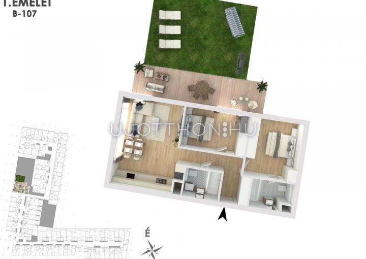 A kivitelezés során kizárólag magas minőségű, időtálló anyagokat használnak, hogy az otthonod ne csak szép, hanem hosszú távon is értékálló legyen. A lakások hőszivattyús rendszerrel működnek, mennyezeti hűtés-fűtéssel, amely nyáron sem szárítja a levegőt. A fürdőszobákban padlófűtés, a lakásokban beépített redőnyök, 20 cm vastag szigetelés és korszerű nyílászárók biztosítják az energiahatékonyságot.