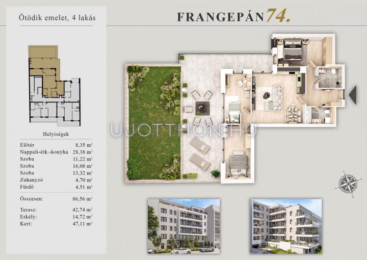 Új lakóparkunk a Frangepán utca központi, mégis csendes részén valósul meg, ideális választás mindazoknak, akik szeretnék élvezni a XIII. kerület pezsgését, ugyanakkor fontos számukra a nyugodt, biztonságos környezet. A közelben minden megtalálható, ami a mindennapi élethez szükséges: boltok, óvodák, iskolák, sport- és szabadidős lehetőségek, valamint a közeli metró- és buszmegállóknak köszönhetően a belváros is gyorsan elérhető.