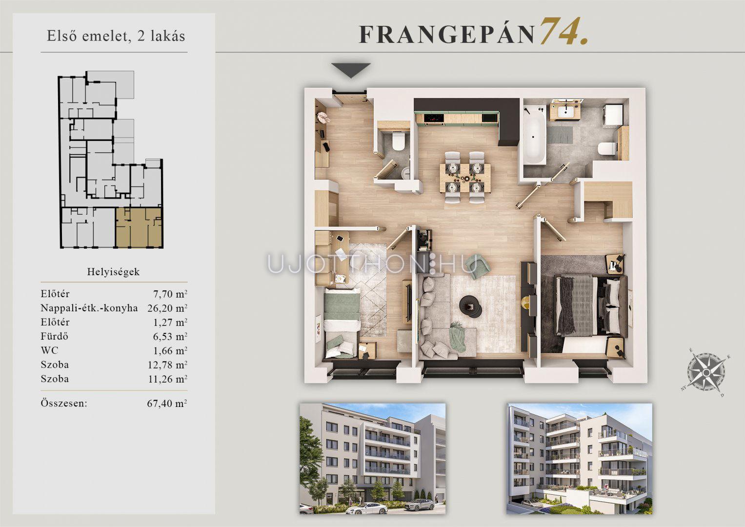 3 szobás 67 m2-es Lakás Frangepán 74 - Budapest XIII. kerület, Angyalföld, Frangepán utca 74