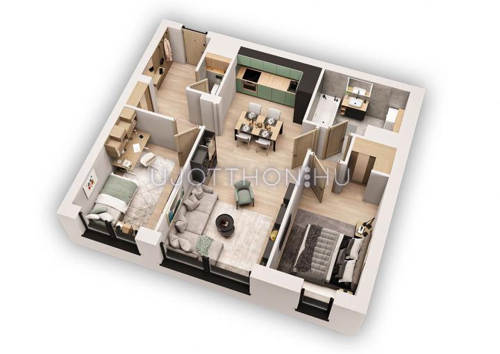 • Széles lakáskínálat: a praktikus garzonoktól a tágas, 4 szobás penthouse lakásokig
