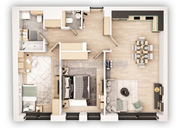 • Széles lakáskínálat: a praktikus garzonoktól a tágas, 4 szobás penthouse lakásokig