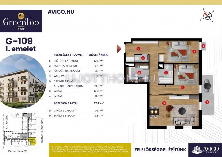 3 szobás 74 m2-es Lakás GreenTop - Budapest XIII. kerület, Angyalföld, Zsinór utca 30-34