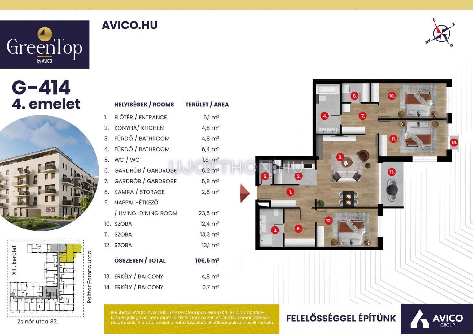 4 szobás 107 m2-es Lakás GreenTop - Budapest XIII. kerület, Angyalföld, Zsinór utca 30-34