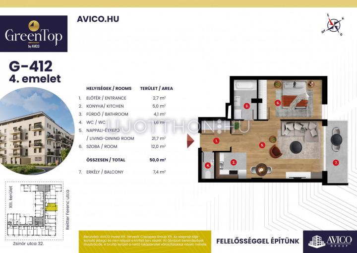 2 szobás 50 m2-es Lakás GreenTop - Budapest XIII. kerület, Angyalföld, Zsinór utca 30-34