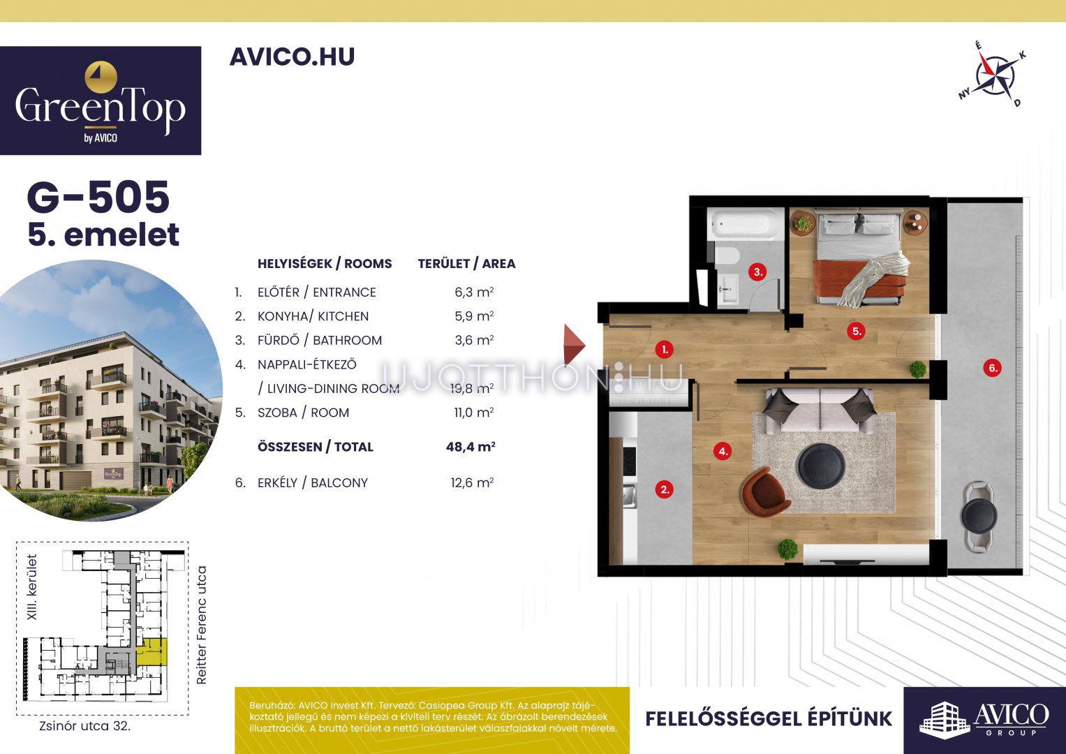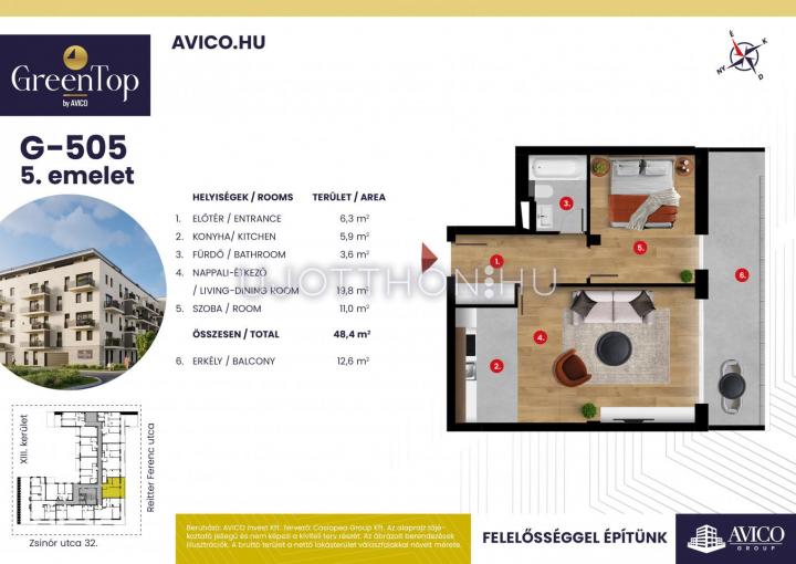 2 szobás 48 m2-es Lakás GreenTop - Budapest XIII. kerület, Angyalföld, Zsinór utca 30-34