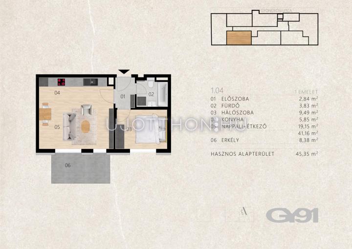 2 szobás 41 m2-es Lakás Gyöngyösi 91 - Budapest XIII. kerület, Angyalföld