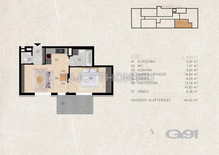 2 szobás 42 m2-es Lakás Gyöngyösi 91 - Budapest XIII. kerület, Angyalföld
