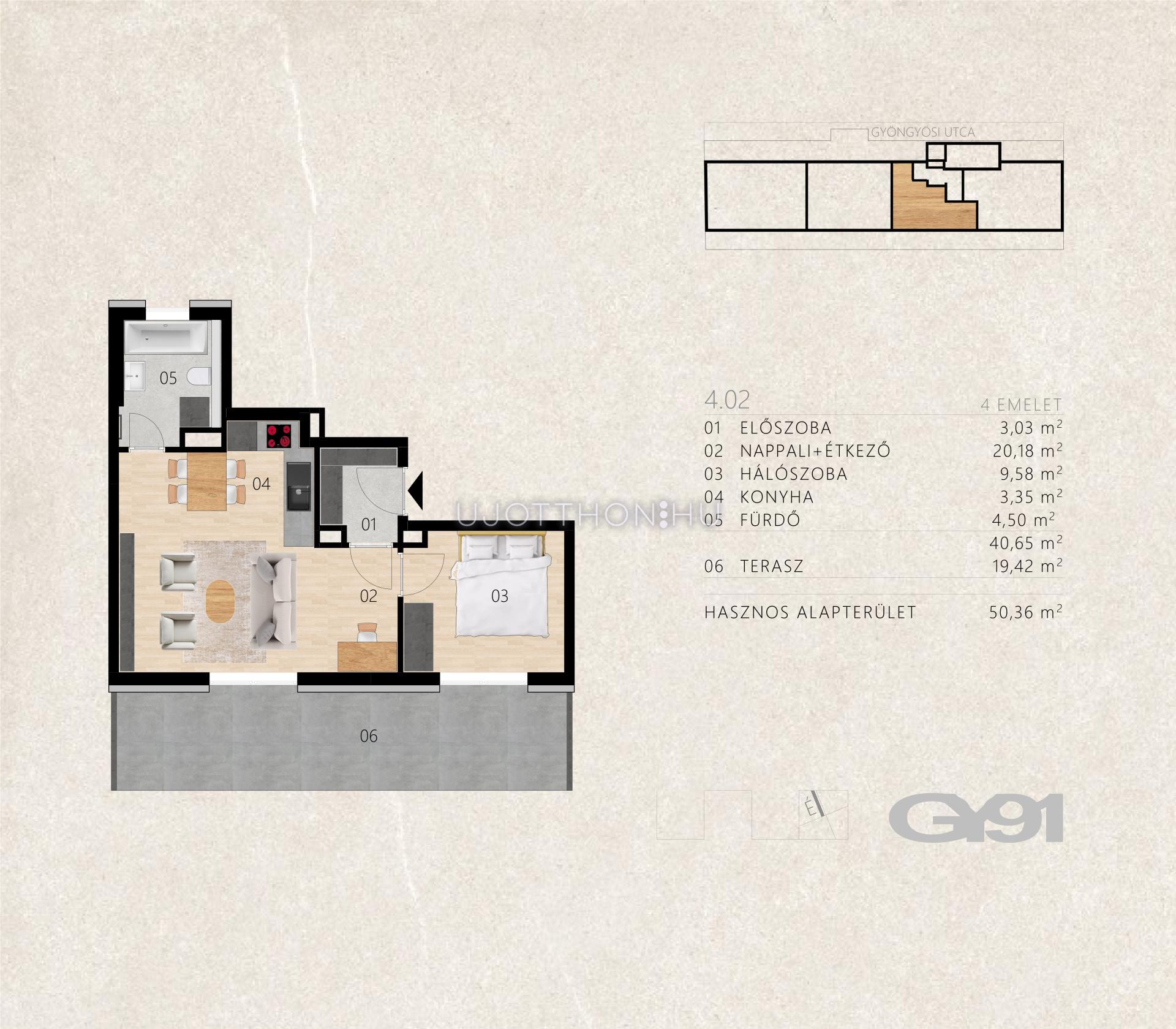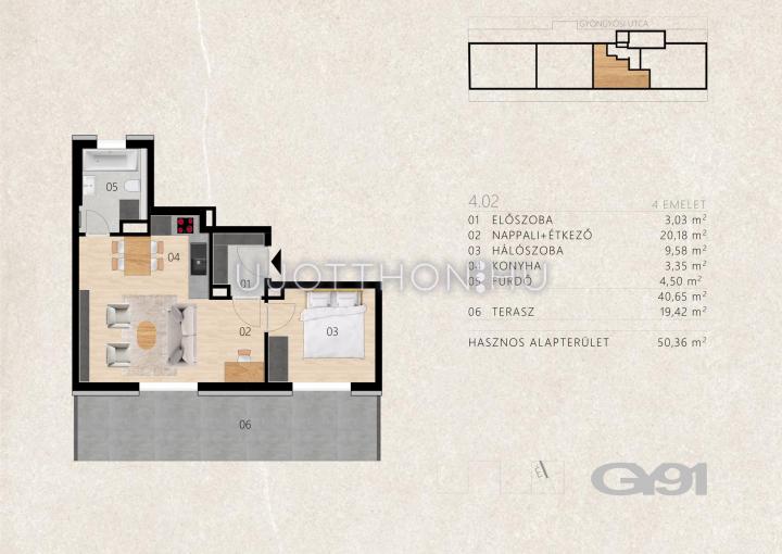 2 szobás 41 m2-es Lakás Gyöngyösi 91 - Budapest XIII. kerület, Angyalföld