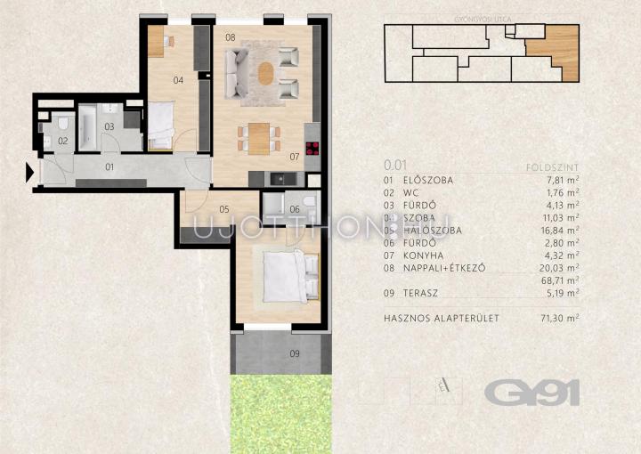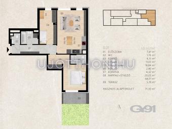 3 szobás 69 m2-es Lakás Gyöngyösi 91 - Budapest XIII. kerület, Angyalföld