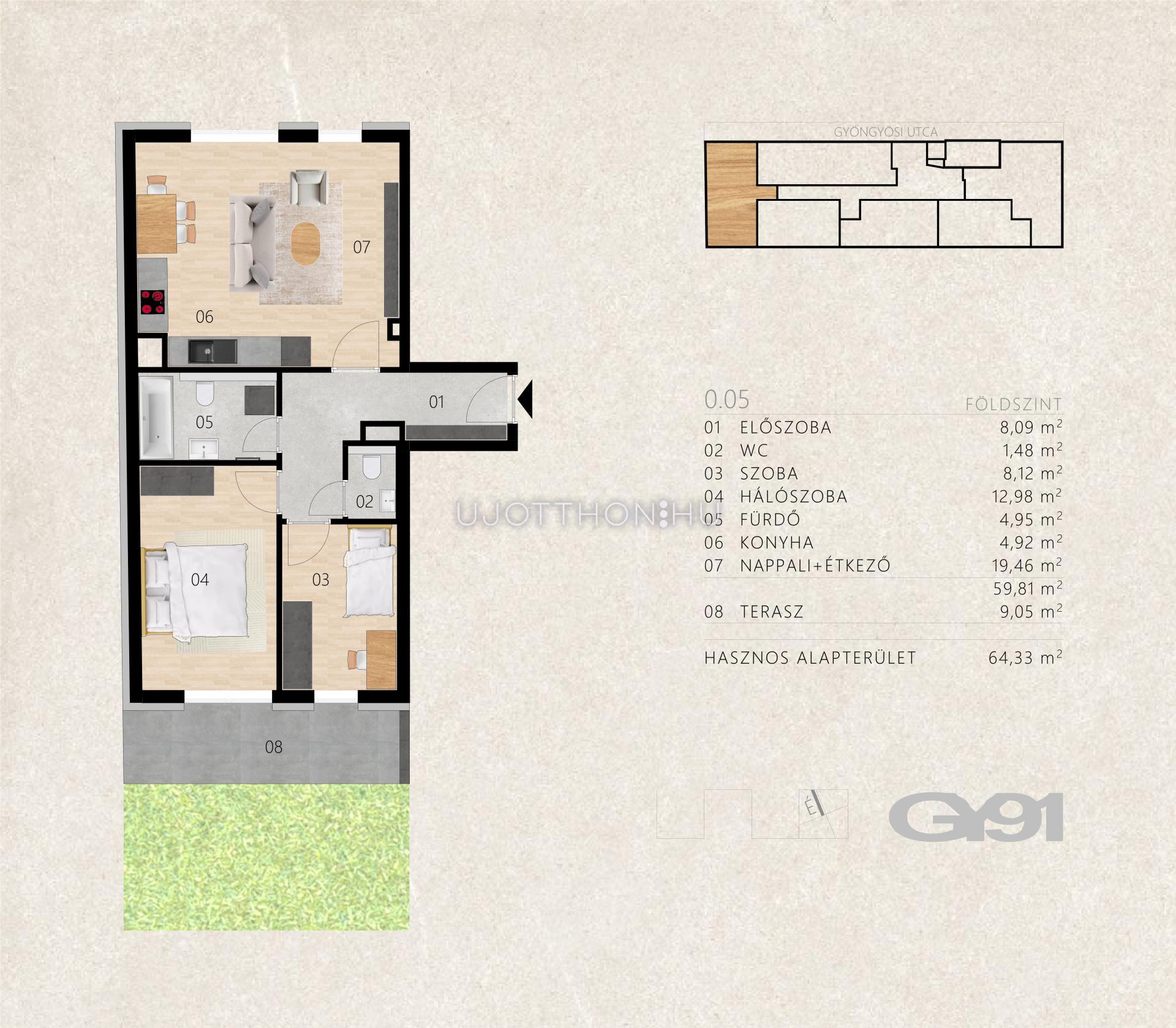 3 szobás 60 m2-es Lakás Gyöngyösi 91 - Budapest XIII. kerület, Angyalföld