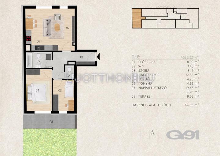 A földszinti lakások egy része kertkapcsolattal rendelkezik, amely ideális választás lehet azoknak a vevőknek, akik kisállattal rendelkeznek vagy zöld környezetre vágynak