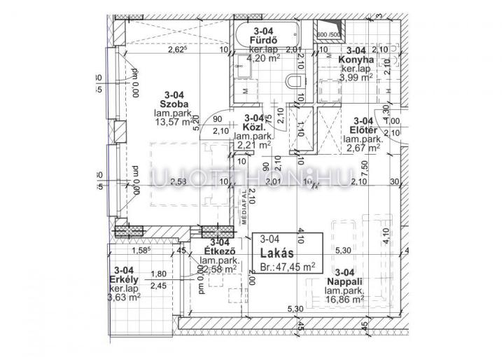 2 szobás 47 m2-es Lakás Jász Liget 135 - Budapest XIII. kerület, Angyalföld, Jász utca 135-137