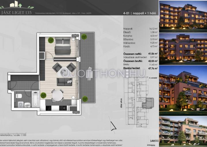 2 szobás 42 m2-es Lakás Jász Liget 135 - Budapest XIII. kerület, Angyalföld, Jász utca 135-137