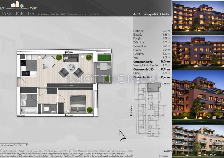 2 szobás 48 m2-es Lakás Jász Liget 135 - Budapest XIII. kerület, Angyalföld, Jász utca 135-137