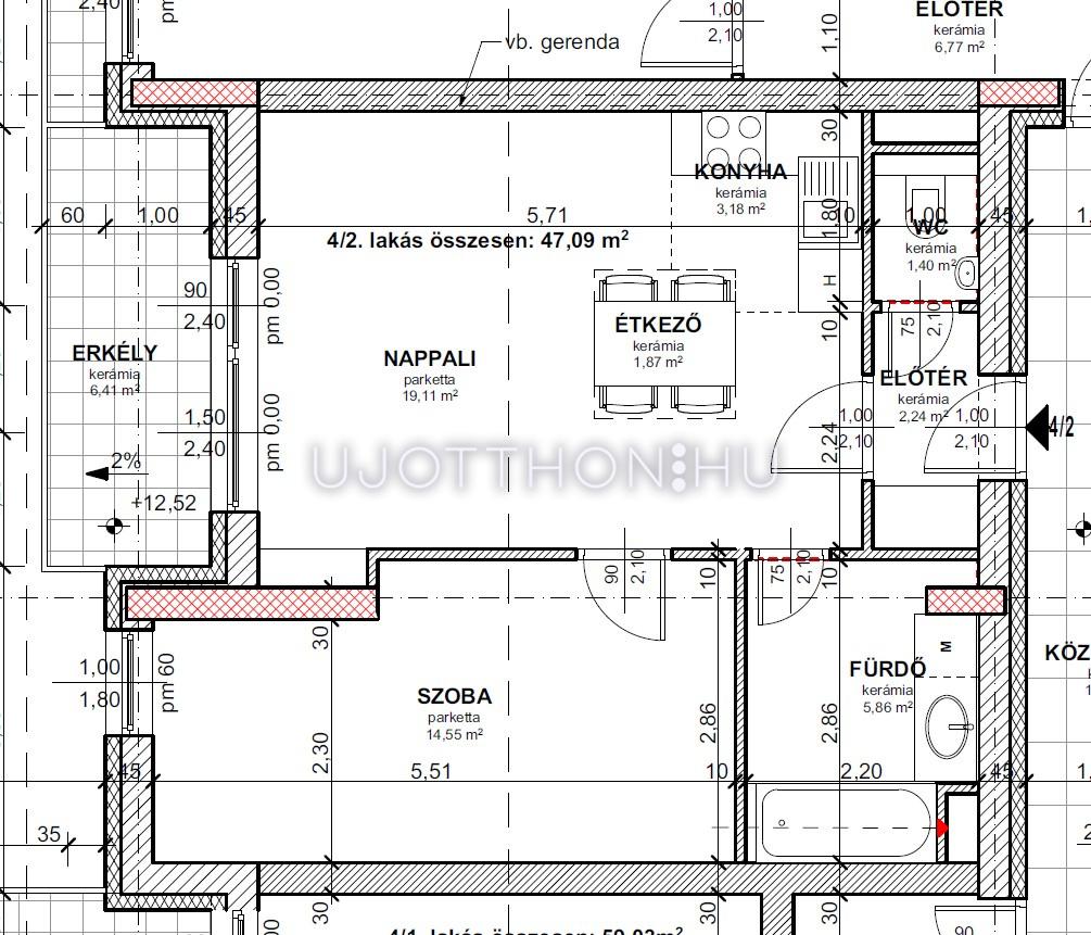 2 szobás 47 m2-es Lakás K7 Residence - Budapest XIII. kerület, Angyalföld