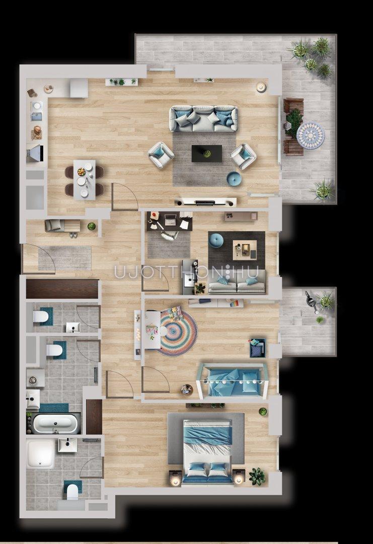 4 szobás 102 m2-es Lakás Le Jardin 2 - Budapest XIII. kerület, Angyalföld, Rozsnyay utca 14-18