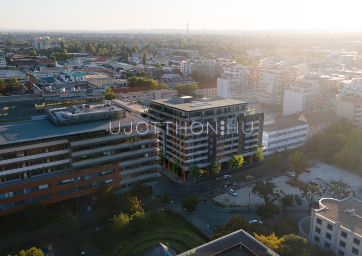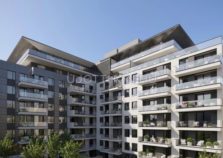 A 9 emeletes új lakópark nem csupán külsőleg egy modern lakóház, de összetételében is minőségi anyagfelhasználás jellemzi. Homlokzatát modern jegyekkel ruháztuk fel, amely kétségkívül környezete egyik központi motívuma lesz.