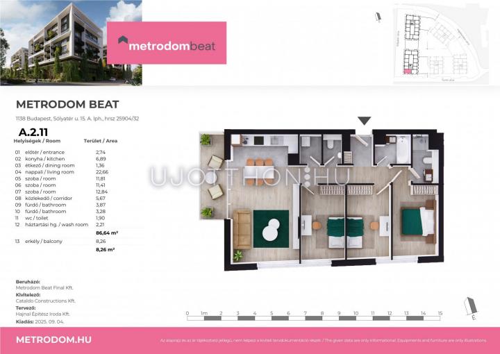 4 szobás 87 m2-es Lakás Metrodom Beat 2. - Budapest XIII. kerület, Vizafogó, Sólyatér utca 15