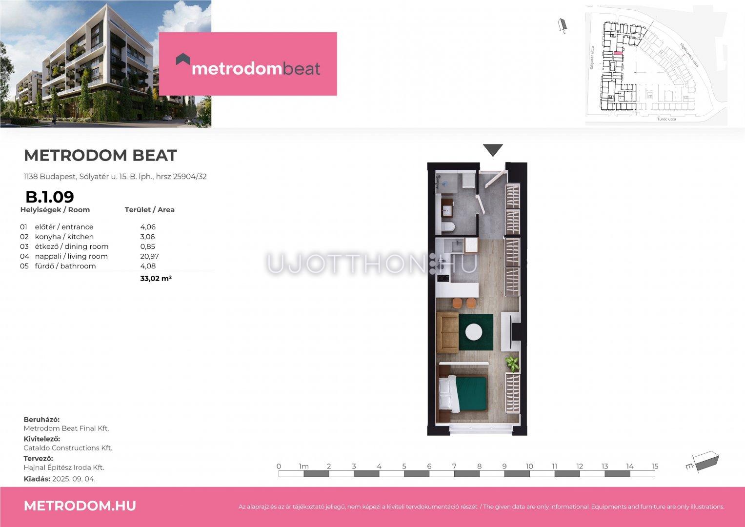 1 szobás 33 m2-es Lakás Metrodom Beat 2. - Budapest XIII. kerület, Vizafogó, Sólyatér utca 15