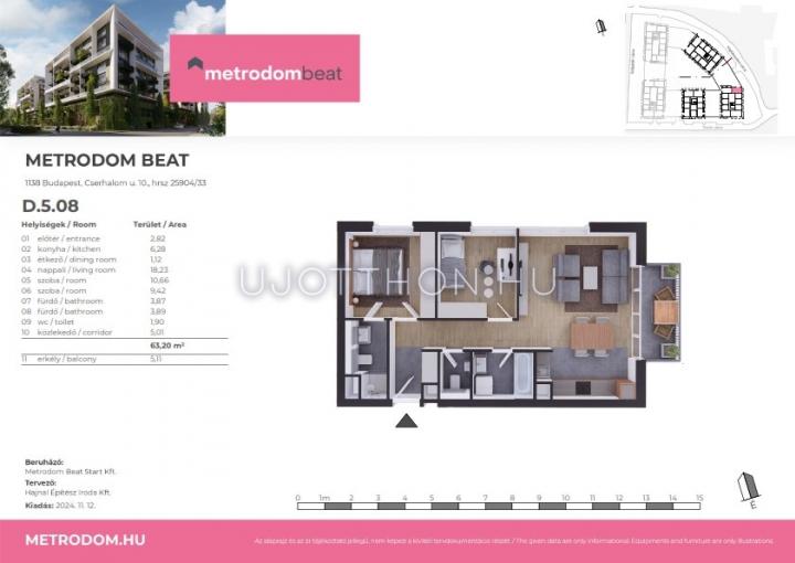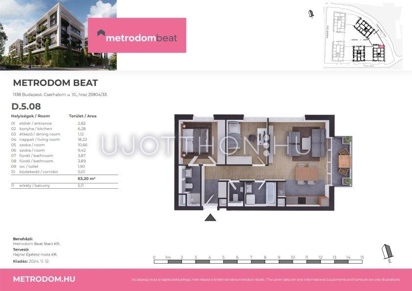 3 szobás 63 m2-es Lakás Metrodom Beat - Budapest XIII. kerület, Vizafogó, Turóc utca 10