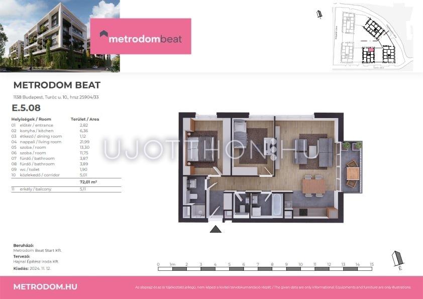 3 szobás 72 m2-es Lakás Metrodom Beat - Budapest XIII. kerület, Vizafogó, Turóc utca 10