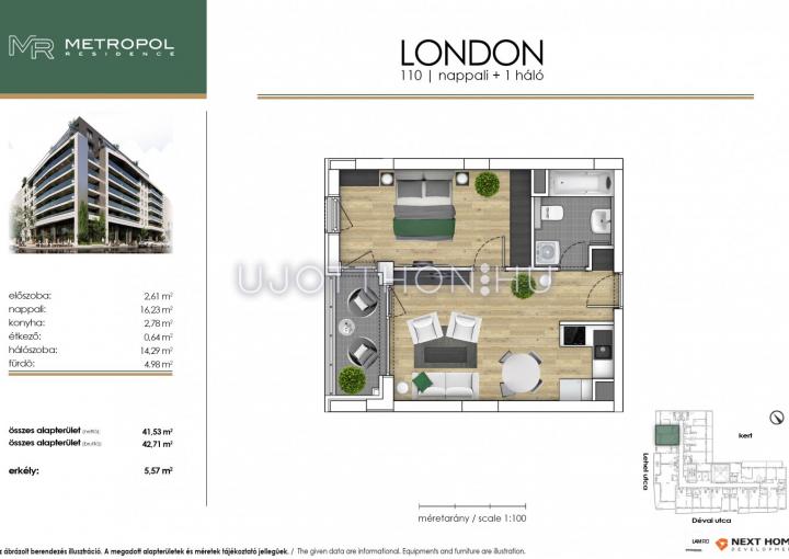 2 szobás 43 m2-es Lakás Metropol Residence - Budapest XIII. kerület, Angyalföld, Dévai utca Lőportár 17