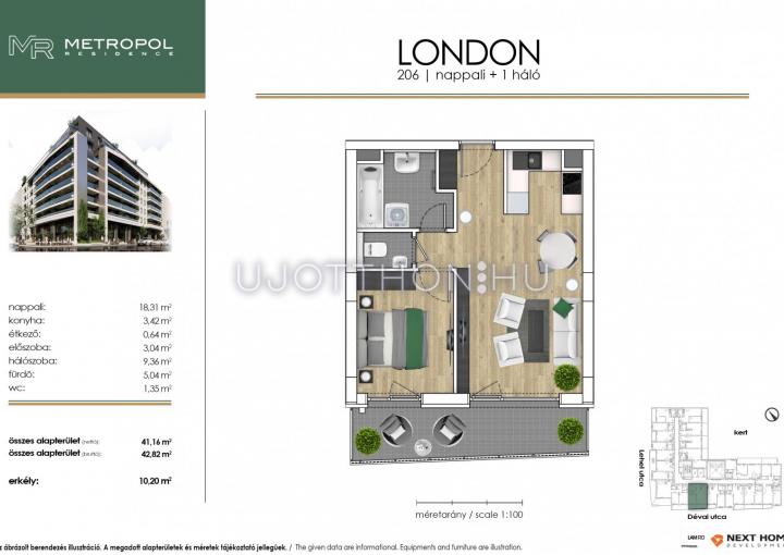 2 szobás 43 m2-es Lakás Metropol Residence - Budapest XIII. kerület, Angyalföld, Dévai utca Lőportár 17