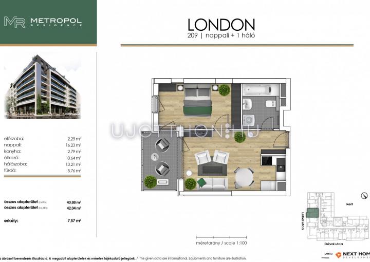 2 szobás 42 m2-es Lakás Metropol Residence - Budapest XIII. kerület, Angyalföld, Dévai utca Lőportár 17