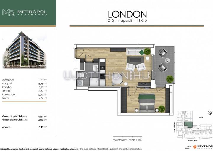 2 szobás 43 m2-es Lakás Metropol Residence - Budapest XIII. kerület, Angyalföld, Dévai utca Lőportár 17