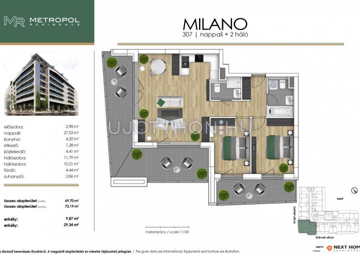 3 szobás 72 m2-es Lakás Metropol Residence - Budapest XIII. kerület, Angyalföld, Dévai utca Lőportár 17